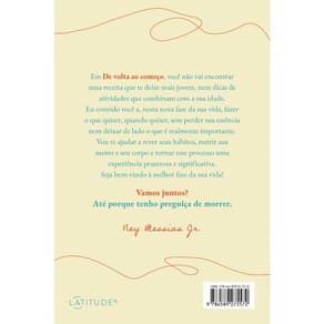 As duas maiores certezas da vida são a velhice e a morte. De qual das duas você tem mais medo? Em De volta ao começo você não vai encontrar receitas que o ajudarão a remoçar, nem dicas de programas que combinam com a “terceira idade”. Muito pelo contrário: pesquisas no mundo inteiro têm sido feitas para que as pessoas 60+ possam fazer o que quiserem, quando quiserem, nutram seus corpos e suas mentes com o que há de melhor e repensem seus hábitos. Você está envelhecendo agora, e este livro te convida a fazer desse processo uma experiência prazerosa e saudável. Vamos juntos? Até porque tenho preguiça de morrer. Marca: LATITUDE EDITORA