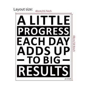 Material: PVC Tamanho: adesivo de parede motivacional de 40 x 48 cm com a frase inspiradora “Um pouco de progresso a cada dia acrescenta grandes resultados”, perfeito para incentivar o esforço e o crescimento diários. Feito de material de PVC durável, este adesivo de parede de vinil é fácil de aplicar e remover, sem deixar resíduos. Ideal para escritórios, salas de estudo ou quartos, ajudando a criar um ambiente focado e motivador para objetivos profissionais ou pessoais. A tipografia arrojada e o design limpo tornam esta arte de parede perfeita para estilos de decoração modernos e minimalistas. Tamanho: 40x48cm, oferecendo um impacto visual significativo e se encaixa bem em vários espaços de parede, de escritórios domésticos a salas de estar.