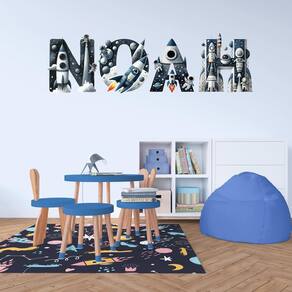 - Decalque de parede personalizado para astronautas — Adicione um toque personalizado ao quarto do seu filho com o nome dele neste adesivo de parede para astronautas. Perfeito para criar uma atmosfera única com tema espacial em seu berçário ou sala de jogos.