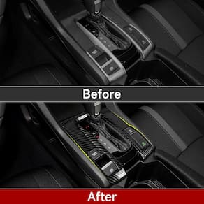 BRMYL Decalques de capa de painel de câmbio para Honda Civic 10ª geração 2016 2017 2018 2019 2020 2021 Honda Civic 10ª geração adesivos interiores de fibra de carbono ABS - Para acessórios Honda Civic de 10ª geração 2016-2021: de acordo com o design autêntico do carro, perfeitamente adequado para acessórios Honda Civic de 10ª geração 2016 2017 2018 2019 2020 2021. - Material de alta qualidade: feito de ABS premium (acrilonitrila butadieno estireno) estilo de fibra de carbono. Excelente resistência à abrasão, resistência ao sol, impermeável, durável e não desbota. - Novo visual: nossos decalques podem cobrir arranhões existentes e evitar arranhões nas unhas do seu carro, arranhões e abrasão, mudando o estilo interior comum e trazendo a você um novo visual. - Fácil de instalar: Não é necessário cortar ou perfurar. Limpe a superfície com álcool, aqueça a fita com um secador de cabelo para melhor adesão, retire a película protetora e cole-a, pressione-a por quase 1 minuto para garantir um melhor efeito. - O que você recebe: O pacote inclui 1 adesivo de painel de câmbio de marchas. se você não estiver satisfeito com nossos itens, nós o ajudaremos a resolver.