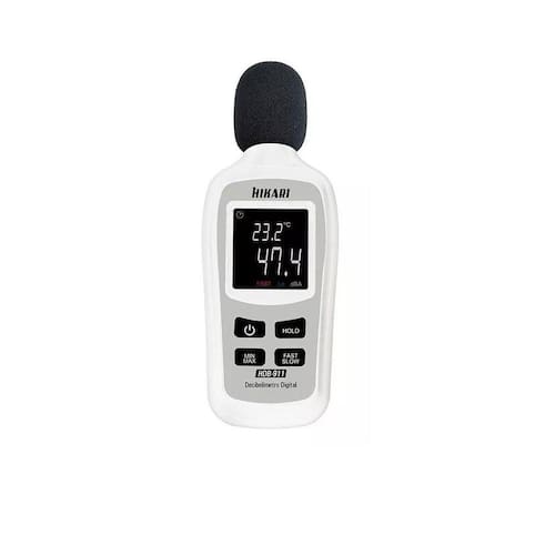 O Decibelímetro Digital Hikari Modelo HDB-911 se destaca por medir nível sonoro de 35dB a 130dB em uma faixa de medida e temperatura ambiente de -20°C a 70°C (-4°F a 158°F). O projeto da estrutura adota um design anatômico, diferente dos padrões convencionais. Como característica adicional apresenta as funções Hold, Máximo, Mínimo, Fast e Slow. Facebook Este Decibelímetro está de acordo com as Nrmas IEC-651 Classe II e também ANSI S1.4 Classe II para medidores de Nível Sonoro. O HDB-911 foi projetado para atender as exigências de precisão em medidas para engenheiros de segurança, especialistas nas áreas de saúde, segurança industrial, controle de qualidade e vários outros ambientes. Faixa de Medição: 35dB ~ 130dB em frequência entre 31.5hz e 8kHz. Display com resolução de 0.1db em um visor LCD de 4 dígitos. Nível de Ponderação A. Faixa de Medida: Baixa 35dB ~ 100dB; Alta 100dB ~ 130dB. Tempo de Resposta: Rápida (125ms) e Lenta (1s). Garantia: 12 meses. Conteúdo: 1 Instrumento 1 peça 2 Manual de Instruções 1 peça 3 Espuma Protetora contra Vento 1 peça 4 Pilha AAA 1,5V (opcional) 3 peças