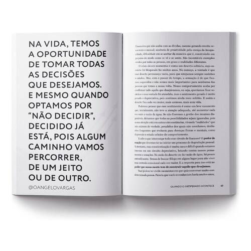 Título do livro : Decida viver o extraordinário Subtítulo do livro : Domine as seis fases da consciência para desbloquear uma vida com prosperidade e sucesso. Autor : Vargas, Angelo Idioma : Português Editora do livro : Gente Autoridade Ano de publicação : 2023 Quantidade de páginas : 208 Altura : 230 mm Largura : 160 mm Peso : 355 g Gênero do livro : Negócios, finanças e economia Subgêneros do livro : Negócios e economia Data de publicação : 10-10-2023