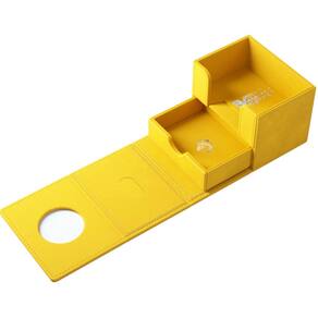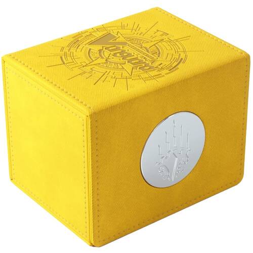 Gamegenic Cardfight!! Vanguard Nation's Vault | Caixa de baralho premium | Comporta até 50 cartas de manga dupla | Gaveta extra para contadores de energia e acessórios | Keter Sanctuary - Cor amarela | Feito - CAIXA DE DECK PREMIUM LICENCIADA Oficialmente: Cardfight!! Vanguard Naton's Vault é a primeira caixa de baralho premium oficialmente licenciada projetada especificamente para as necessidades e requisitos da Cardfight!! Jogadores Vanguard. - Comporta até 50 cartas duplas: esta caixa de baralho premium tem o tamanho perfeito para guardar um baralho completo de até 50 cartas, mesmo com mangas duplas. Além disso, existem 2 bolsos protegidos para apresentar e armazenar com segurança até 4 cartões especiais. - Solução conveniente de armazenamento de jogos: The Cardfight!! O Cofre da Vanguard Nation's contém uma gaveta para armazenar balcões de energia ou outros acessórios. Um ímã forte garante um fecho seguro e mantém seu valioso deck protegido com segurança. Podemos dizer com orgulho que este é o produto perfeito e muito esperado para Cardfight!! Vanguard. - Material de alta qualidade: esta caixa rígida e durável é construída com uma superfície Nexofyber premium e forro interno de microfibra e oferece fácil acesso para remoção de seus decks. Ímãs poderosos fornecem um fecho preciso e seguro. - Colecione todos: vem em 6 cores diferentes, todas as seis nações diferentes são representadas com sua cor correspondente e o inovador cadeado banhado a metal com o símbolo do país na frente. Use-as com outros produtos Gamegenic, como mangas de cartas.