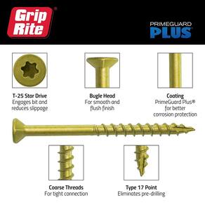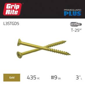 Parafuso Grip-Rite L3STGD5 PrimeGuard Plus #9 x 3 de madeira a madeira, dourado, caixa de 5 libras -
