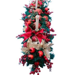 Decoração Arranjo De Mesa Natalino Velas Castiçal Bola 120cm -