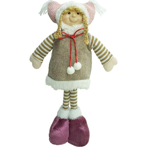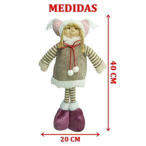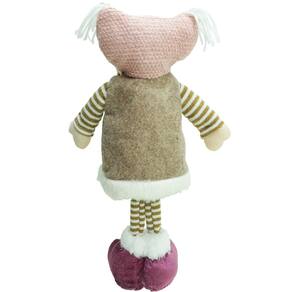 Decoração Boneca Menina Com Gorro Vestido Marrom Natal 40cm -