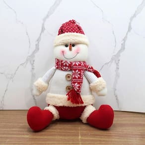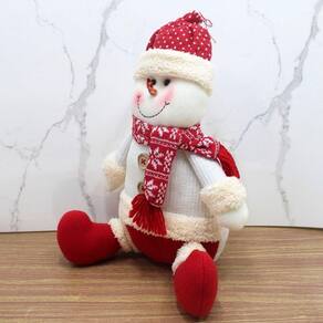 Decoração Boneco Neve Sentado Enfeite Tecido Natalino 35cm
