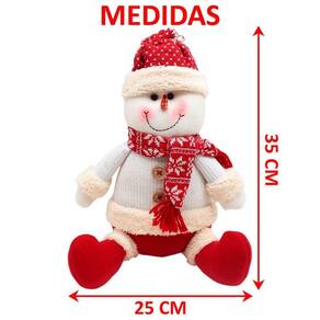 Decoração Boneco Neve Sentado Enfeite Tecido Natalino 35cm -