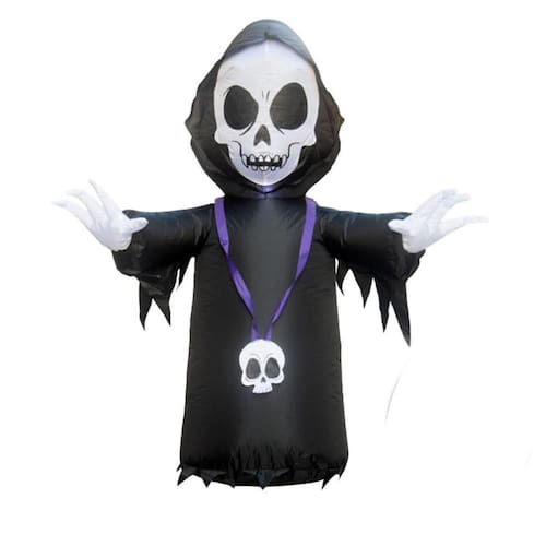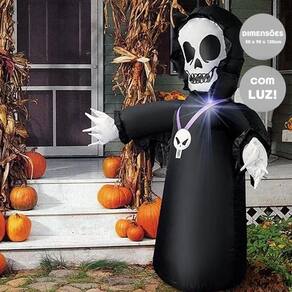 Decoração caveira da morte inflável 120cm halloween ydh dê um toque de diversão sinistra à sua decoração de halloween com a adição dos nossos produtos infláveis imagine a reação dos seus convidados quando se depararem com essa figura intrigante, envolvendo todos com seu charme peculiar. Tem um design complexo, incorporando elementos clássicos de halloween como fantasmas, abóboras e um chapéu de bruxa. Seu design único e interessante pode adicionar uma vibração divertida e assustadora à sua decoração de halloween, tornando a perfeita para uso interno ou externo. Com iluminação led assustadora e design sinistro, este enfeite fará todos tremerem de medo. Reutilizável e durável: projetado para uso repetido, garantindo diversão duradoura. Características: - dimensões aproximadas: 120cm de altura, 90cm de largura e 50cm de comprimento; - voltagem: bivolt; - resistente a água; - conteúdo: 1 boneco inflável com ventilador embutido, luzes inflável, estacas, cordões e cabo de energia; - ideal para decoração de jardim de quintal familiar, modelo de decoração de palco; - fácil de inflar: basta colocar na tomada para inflar o enfeire e em poucos minutos, facilitando a montagem e desmontagem da decoração. -imagens meramente ilustrativas- atenção: a cor do produto pode variar de acordo com o monitor atenção: o fabricante pode alterar a cor de alguma parte do produto sem aviso prévio. Homologação Inmetro: CE-BRI/ICEPEX-I 02405-74-2