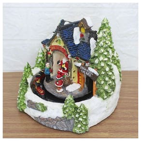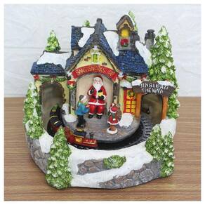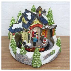 Caracteristicas: Possui lâmpadas de Led colorido que iluminam todo o cenário Possui movimento: Trêm circulando Possui música Material: Resina 2 métodos de alimentação: usb plug-in (incluído na entrega) 3 Pilha AA (não incluída)