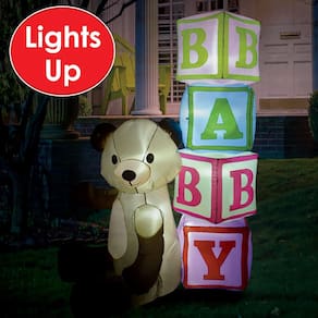 Beistle Urso inflável jumbo de 1,8 m e blocos de decoração de chá de bebê para quintal com luzes LED decoração de gramado, uso interno/externo