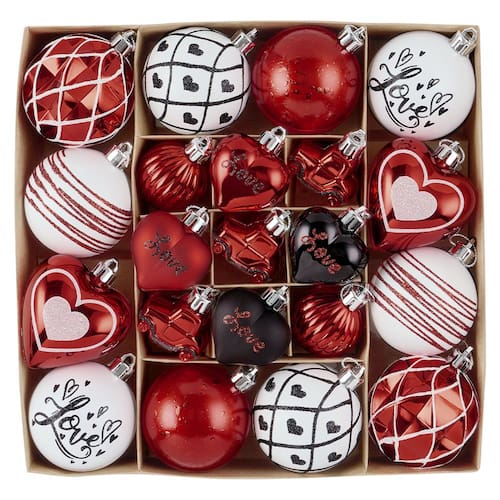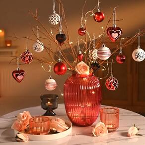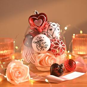 Decorações de árvore de Natal para Dia dos Namorados - ?Decoração romântica dos namorados? As decorações de árvore do dia dos namorados com ornamentos de coração são projetadas para criar uma atmosfera romântica e sincera, adicionando um toque de calor e celebração à ocasião. Contém caminhões, corações e cerca de sete outras bolas decorativas diferentes. - Variedade de padrões e acabamentos: este conjunto de enfeites de Natal rosa choque vermelho e preto para o dia dos namorados inclui carro, coração e ornamentos com elementos relacionados ao amor para adicionar uma sensação de romance durante o dia dos namorados no Natal. Além disso, uma mistura de acabamentos foscos, mosqueados e brilhantes ajuda a aumentar a abundância de suas decorações de Natal para o dia dos namorados. - ?Bola inquebrável?Feito de plástico durável, estas decorações de árvore de Dia dos Namorados rosa choque vermelho e preto são inquebráveis, proporcionando uso duradouro e tranquilidade. - ?Pronto para pendurar?Cordas para pendurar pré-roscadas e tampas penduráveis em cima de cada bola de plástico tornam esses mini enfeites de árvore para todas as estações convenientes e fáceis de pendurar. - ?Multiuso?Estes enfeites de Dia dos Namorados são perfeitos para mini árvores de mesa, peças centrais de mesa, grinaldas, artesanato DIY e enfeites de presente para o Dia dos Namorados, festas de aniversário de meninas, casamentos, aniversários e qualquer lugar que você queira criar uma atmosfera acolhedora.