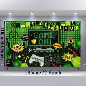 - Grande dimensão: este jogo em pano de fundo mede aproximadamente 185 x 110 cm/72,8 x 43,3 polegadas, que é grande o suficiente para tirar fotos ou decorar sua festa de aniversário, enfeites atraentes e engraçados para uma festa de videogame