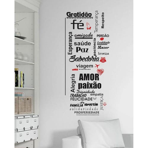 ADESIVO DECORATIVO DE PAREDE Adesivo De Decoração Frase Gratidão, Fé , Detalhes Vermelho Tamanho (Alt.xComp.)110x47 cm DescriçãoDecore sua casa: ideal para sala, quarto, cozinha, moveis, escritório, vidros de box, janelas, portas, etc.Ótima qualidade: Recortado eletronicamente em máquina de última geração.Ótimo acabamento: produzido em vinil de fácil aplicação, e pode ser removido a qualquer momento sem prejudicar a pintura ou a superfície aplicada Dica de Aplicação : Limpe o local com um pano úmido, certifique-se de retirar todo o pó da parede para melhor fixação do produto. Enviamos manual e temos video que ensina aplicar, de facil aplicação