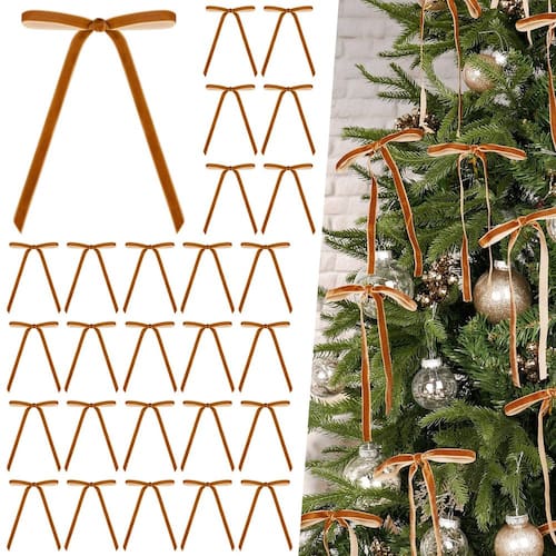 30 peças de laços de veludo cáqui para guirlanda de árvore de Natal, laços artesanais rústicos, laços de veludo vintage para guirlanda de Natal, enfeites de árvore de casamento e casa de casamento (largura de 3/8", 5 x 7 polegadas)