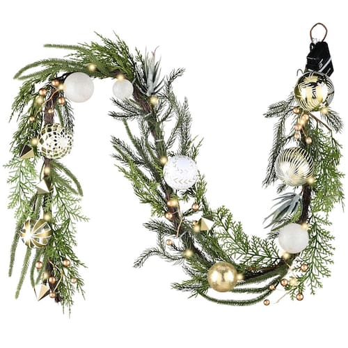 A guirlanda de Natal Decorbyhannah Prelit é uma decoração de Natal lindamente elaborada, projetada para vários ambientes, como portas dianteiras, janelas, peças centrais de mesa, armários de cozinha e muito mais. Esta guirlanda de portas de Natal não apenas adiciona uma forte atmosfera natalina à sua casa, mas também traz aconchego à sua família com seu design distinto. Parâmetros do produto: Tamanho: 6 pés/9 pés Material: folhas de cipreste artificiais de alta qualidade, decoradas com vários elementos festivos. Instruções de uso de luzes: Equipado com 20 luzes LED amarelas quentes. Basta colocar o botão na posição “ON” e as luzes acenderão por 6 horas e, em seguida, desligarão automaticamente por 18 horas no mesmo horário todos os dias. Aproveite a conveniência do tempo predefinido para uma iluminação consistente. Funciona com bateria: 3 pilhas AA. (Observe que as baterias não estão incluídas no pacote.) Notas: Como organizar: A guirlanda é embalada em uma caixa para transporte seguro. Ao receber, você precisa expandir o cipreste e as folhas do ornamento até sua melhor forma. Essencial de Natal: A guirlanda de Natal Decorbyhannah Prelit é uma decoração de Natal essencial para sua casa. Seja para a porta da frente, janelas, lareira ou como peça central de mesa, ela adiciona uma forte atmosfera festiva e traz calor e harmonia ao seu Natal. -? -??O tamanho total da guirlanda é de cerca de 6 pés (180-182 cm), oferecendo ampla cobertura para a maioria das cenas. (Observe que um desvio de 2 ~ 3 cm pode ocorrer devido à medição manual.) -??A guirlanda de Natal para manto é decorada com 20 luzes LED amarelas quentes, criando um ambiente luminoso extraordinário. Ao colocar facilmente o botão na posição “ON”, as luzes acenderão por 6 horas e depois se apagarão automaticamente por 18 horas no mesmo horário todos os dias, com base nas configurações iniciais do modo. Aproveite a conveniência do tempo predefinido para uma experiência de iluminação consistente. -??As luzes são alimentadas por 3 pilhas AA. Observe que as baterias não estão incluídas no pacote. -??A guirlanda de Natal Real Touch é meticulosamente trabalhada com vegetação realista. Seu artesanato garante uma beleza duradoura, mesmo em diferentes climas ou locais. -??A guirlanda caberia em uma caixa para um transporte seguro, então você precisa ajustar a guirlanda na melhor forma. -??A videira é facilmente dobrada para atender às suas necessidades de decoração de manto, lareira, escadas, mesas, porta da frente durante o feriado de Natal, casamento, Ação de Graças e celebração de outono. -??Visite nossa loja de marca para combinar guirlandas e ornamentos para completar seu look festivo.