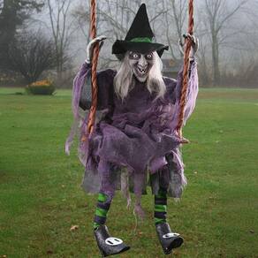 Monte sua casa para um divertido Halloween usando a Bruxa Balançante de 91,44 cm de altura. Normalmente, as pessoas vão com uma exibição assustadora durante a temporada, mas você pode ficar um pouco mais amigável. Este adereço apresenta uma bruxa sentada em um balanço. Ela é completa com um chapéu, meias listradas e muito mais. É grande o suficiente para notar, então se alguém se assustar facilmente, pode evitá-lo. Mas, a bruxa balançante está aqui para se divertir, não assustar ninguém! Navegue pelo nosso site para encontrar ainda mais decorações de Halloween.