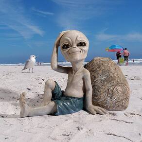 Material: resina sintética Tamanho: 28* 19* 14 cm Peso: 700 g ['• Design alienígena exclusivo: com uma figura extraterrestre relaxada encostada em uma rocha esculpida, esta escultura caprichosa adiciona um toque peculiar à decoração de jardins e paisagens ao ar livre. ', '• Artesanato detalhado em resina: feita de resina durável, a figura mostra olhos expressivos, músculos esculpidos e texturas envelhecidas, trazendo personalidade e humor aos enfeites de jardim. ', '• Display externo e interno: ideal para cantos de pátios, bordas de gramados, áreas de estar na varanda ou prateleiras internas, criando um ponto focal divertido em decorações com temas de ficção científica ou fantasia. ', '• Robusta e resistente às intempéries: a estátua resiste ao sol e à chuva, tornando-a adequada para colocação em jardins de longo prazo sem desbotar ou rachar. ', '• Conversation Starter: perfeito para quem gosta de figuras incomuns, esse ornamento alienígena combina bem com estátuas, gnomos ou criaturas míticas para despertar a curiosidade.']