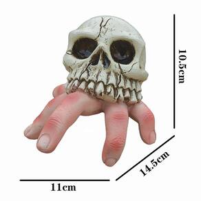 Material: Resina Tamanho: 11 cm × 14,5 cm × 10,5 cm Peso: 236 g ['Design exclusivo de terror — apresenta uma caveira realista mordendo uma mão rastejante, criando uma decoração de Halloween arrepiante e impressionante, perfeita para jardins assombrados ou exibições assustadoras. ', 'Material de resina durável — Feita de resina de alta qualidade com excelente artesanato, esta escultura é resistente às intempéries e adequada para configurações internas e externas de Halloween. ', 'Tamanho de tela perfeito — Medindo 11 × 14,5 × 10,5 cm e pesando 236 g, a figura compacta e detalhada se encaixa perfeitamente em gramados, pátios, mesas ou perto de caminhos de jardim. ', 'Detalhamento realista — As rachaduras do crânio pintadas à mão, a textura óssea e o sutil tom de sangue conferem a esse ornamento uma aparência realista e assustadora. ', 'Ornamento versátil de Halloween — Ideal para quintais, portas, quartos mal-assombrados ou cenas de pátio, esta estátua de figura assustadora adiciona um toque dramático e misterioso à decoração do seu jardim']