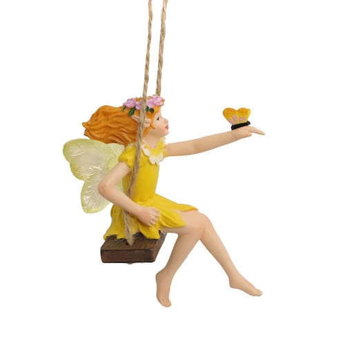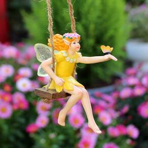 Material: Resina Tamanho: 7* 4,5* 8,3 cm Peso: 105 g ['Charming Fairy Design — Linda escultura de uma fada em um vestido amarelo sentada em um balanço, segurando uma borboleta, adicionando elegância e fantasia a qualquer cena de jardim. ', 'Material de resina de alta qualidade — Feita de resina durável e resistente às intempéries, esta estátua de figura mantém cores vibrantes e detalhes finos em todas as estações. ', 'Fácil de pendurar — vem com cordas resistentes para instalação rápida em árvores, varandas ou paredes de jardim, perfeitas para configurações decorativas externas ou internas. ', 'Delicados detalhes pintados à mão — Apresenta asas realistas, coroa floral e rosto expressivo que realçam o charme realista e mágico da escultura. ', 'Ornamento de jardim perfeito — Ideal para pátios, pátios e jardins de fadas, esta estátua de fada pendurada cria uma atmosfera extravagante e alegre.']