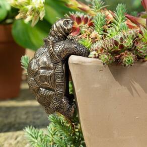 Material: Resina Tamanho: 10* 6,5* 6,2 cm Peso: 150 g ['• Design realista de tartaruga: com uma tartaruga trepadeira posicionada na borda, esta figura detalhada adiciona um toque encantador e natural a vasos de plantas, paredes de jardim ou pátios. ', '• Artesanato de resina durável: feita de resina resistente com acabamento rústico, a estátua é resistente às intempéries e adequada para ambientes externos, como quintais, varandas e pátios. ', '• Enfeite exclusivo de borda de vaso: especialmente moldado para pendurar com segurança em vasos ou saliências, este ornamento traz um caráter divertido e realça o apelo dos arranjos de jardim. ', '• Concha e detalhes texturizados: os padrões de concha finamente esculpidos e a textura realista destacam a qualidade artística, combinando bem com vários temas de decoração de jardins. ', '• Acento externo versátil: ideal para decorar canteiros de flores, trilhos de varanda ou expositores de mesa, esta escultura adiciona personalidade a qualquer espaço ao ar livre ou canto verde interno.']