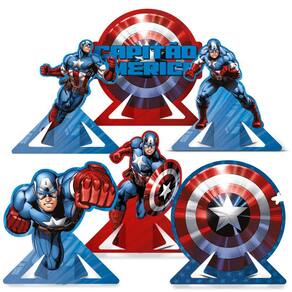Transforme sua mesa em uma verdadeira cena de ação com a Decoração de Mesa Capitão América - Pacote com 6 Unidades!