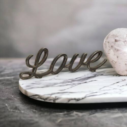 Decoração de mesa Cheungs Cast Iron Love, 10" L x 0,5" L x 3" H, preta
