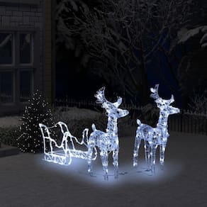 Decore seu jardim ou casa com esta coleção exclusiva. Esta decoração de Natal de 2 renas e trenós combinada com luz branca fria realça a verdadeira beleza