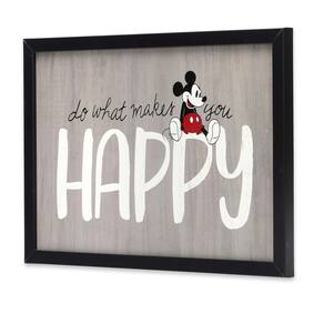 Deixe seu mouse favorito inspirar grandeza todos os dias com esta decoração sofisticada! Com Mickey Mouse e as palavras: "Faça o que faz você feliz", esta placa é um lembrete importante de que você é capaz de qualquer coisa que você decida fazer. - Produto oficial da Disney: Deixe seu mouse favorito inspirar grandeza todos os dias com esta decoração fantasiosa! Com Mickey Mouse e as palavras, "Faça o que te faz feliz", esta placa é um lembrete importante de que você é capaz de qualquer coisa que você decidir. - Decoração de parede de madeira emoldurada: O fundo cinza neutro e lavado garante que esta peça combine com qualquer decoração existente, e a ilustração clássica do Mickey adiciona um toque vintage. - Material: Esta decoração de parede exclusiva é feita de MDF. Feito nos EUA. - Locais de uso: use esta arte de parede caprichosa para personalizar o quarto ou a sala de jogos do seu filho! - Tamanho: 45.4 cm L X 31.1 cm A X 2.4 cm D