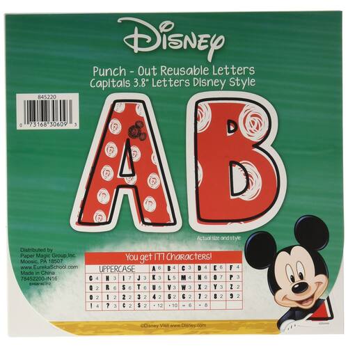 Eureka Disney Mickey Mouse Vermelho e Branco Punch Out Letter Decoração Sala de Aula, 177 peças, 9,5 cm A - Inclui (177) peças impressas em papel revestido. - As letras têm 10 cm de altura - Perfure essas letras do Mickey Mouse e coloque-as na parede para algumas palavras decorativas de sala de aula divertidas, criativas e coloridas. - Obtenha estas ótimas decorações de sala de aula para projetos em quadros de avisos, quadros-negros ou janelas como parte do seu mojo de volta às aulas. - Essas letras perfuradas podem ser reutilizadas todos os anos!