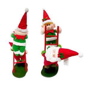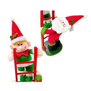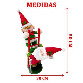 1 Decoração Enfeite De Natal Papai Noel E Elfo Na Escada 50cm;
