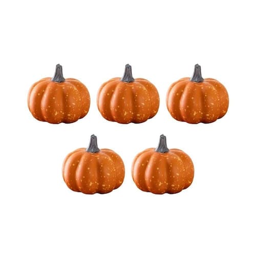 Conjunto com 5 unidades de abóbora mini morangas decorativas, perfeitas para ambientar sua celebração de Dia das Bruxas.