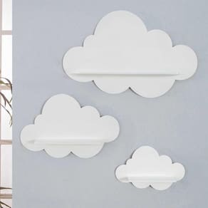 Lindo jogo de prateleiras em formato de nuvem fabricados em mdf, dando um ótimo design e acabamento para decoração do seu ambiente. Ideal para decorar quarto de bebe até mesmo sala, cozinha ou banheiro. Perfeito para completar sua decoração, com muito amor e carinho que você deseja. O jogo é composto por 03 unidades prontas para serem utilizadas, apenas retirar a fita dupla face do verso e cola na parede. Conteúdo da embalagem: 01 nuvem pequena - 20 x 30 x 10m altura x largura x profundidade 01 nuvem média - 25 x 38 x 10 cm altura x largura x profundidade 01 nuvem grande - 34 x 53 x 10 cm altura x largura x profundidade Comprando conosco, você tem a total dos produtos. Caso haja danos durante o transporte, enviaremos as peças de reposição sem nenhum custo. Fixação na parede por fita dupla face conforme imagens do produto . Dispensa furos na parede. Peso máximo: 1 kg Todas as informações divulgadas são de responsabilidades do fabricante / fornecedor. Imagens meramente ilustrativas, podendo sofrer variação de cor. Produto artesanal. Marca: Não Informado Ean: 7898675513979