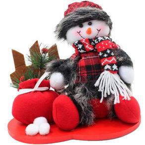 Decoração Natal Boneco De Neve Tecido Xadrez Natalino 26cm -