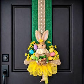 Decoração Páscoa Escapulário Porta Coelha Cesta Ovos 1,80m Decoração Páscoa Escapulário Porta Coelha Cesta Ovos 1,80m - Deixe sua entrada ainda mais encantadora nesta Páscoa com este lindo escapulário decorativo para porta, com coelha, cesta e ovos. Um enfeite vertical elegante que traz o clima alegre e acolhedor da Páscoa logo na chegada ao ambiente Características: Tema: Coelha, cesta e ovos Coelha: 50cm x 35cm Comprimento aproximado: 1,80 m Uso: Enfeite para porta e parede Embalagem: 1 Escapulário de Páscoa de 1,80 m
