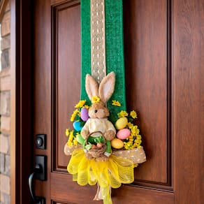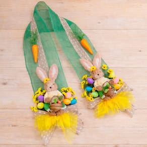 Deixe sua entrada ainda mais encantadora nesta Páscoa com este lindo escapulário decorativo para porta, com coelha, cesta e ovos. Um enfeite vertical elegante que traz o clima alegre e acolhedor da Páscoa logo na chegada ao ambiente