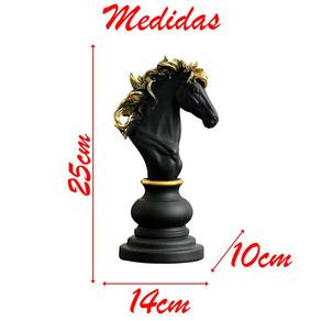 Decoração Peças De Xadrez Preto Cavalo Escultura Grande Estátua 25cm -