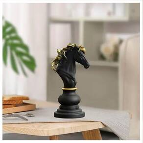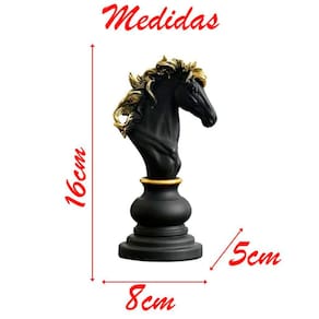Decoração Peças De Xadrez Preto Cavalo Escultura Média Estátua 16cm -