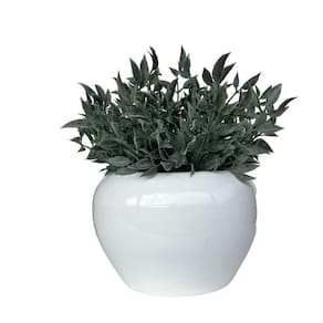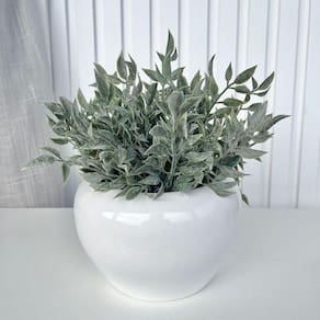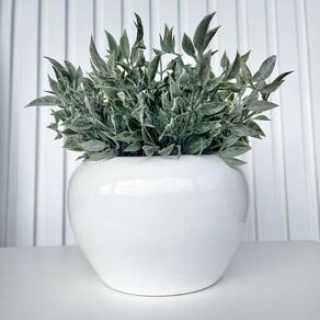 Decoração sala aparador vaso centro de mesa médio lorance cachepot cachepô de cerâmica liso na cor branca + arranjo planta moderna artificial.