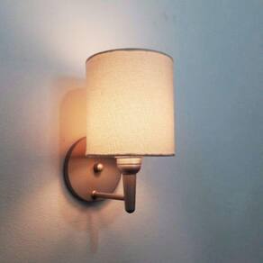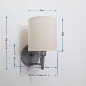 Arandela de Cabeceira e Camarim Cilindrica Md-2009 Base Cinza Cupula em Tecido 14x15cm Algodao Cru