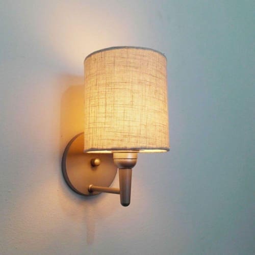 Arandela de Cabeceira e Camarim Cilindrica Md-2009 Base Cinza Cupula em Tecido 14x15cm Rustico Bege