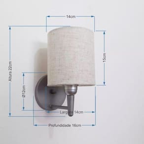 Arandela Cilindrica Md-2009 Base Cinza Cúpula em Tecido 14x15cm Rustico Bege