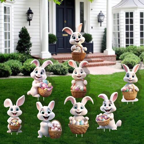 Decorações de páscoa ao ar livre, placas de gramado, coelhinhos fofos com estacas, cesta de ovos de coelhos engraçados para festas de fim de ano, primavera, jardim, pátio, suprimentos temáticos, festivais, 8 unidades - Placa de pátio de coelhinhos para decoração ao ar livre de Páscoa: se você ama coelhos, estas placas de pátio de Páscoa seriam perfeitas para sua decoração. Eles serão um ótimo recurso na exibição do seu gramado, desejamos a todos que são especiais um dia de Páscoa cheio de alegria, é a decoração perfeita para a primavera ao ar livre. - Qualidade e confiável: feito de placa de plástico de qualidade; eles são resistentes ao clima, garantindo que mantenham sua aparência atraente durante a Páscoa e além; Sua durabilidade os torna uma adição confiável à sua decoração sazonal; o material é resistente às intempéries, impermeável e durável, não desbota facilmente, pode ser aplicado por um longo tempo - Tamanho conveniente: o tamanho dessas decorações de Páscoa ao ar livre é escolhido para melhorar sua visibilidade, o design superdimensionado dessas placas de quintal garante que sejam significativamente espetaculares e atraentes, fazendo seu quintal se destacar - Conteúdo da embalagem: você receberá 8 placas de quintal de coelhinho da Páscoa e 16 estacas de plástico - Uso versátil: nossas decorações de coelhinho da Páscoa ao ar livre são incrivelmente fáceis de instalar; o tamanho e o design são ideais para uso variado; desde enfeitar seu jardim até adicionar charme ao seu gramado ou quintal; a decoração do gramado das placas de quintal da Páscoa é perfeita para qualquer decoração temática de Páscoa ou primavera; experimente uma transição sem esforço para a estação festiva com estas placas de quintal encantadoras
