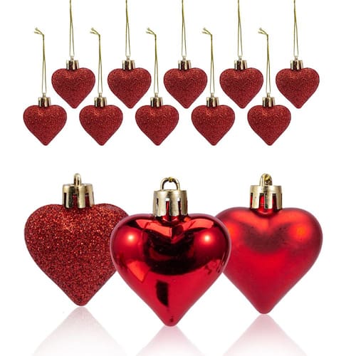 36 peças de decoração de árvore de dia dos namorados, ornamentos em forma de coração, enfeites de árvore pendurados para árvore de Natal, decoração romântica do dia dos namorados para festa em casa, casamento - 36 peças de ornamentos em forma de coração em 3 acabamentos: Desfrute de um conjunto de 36 encantadores ornamentos em forma de coração, todos meticulosamente trabalhados com três tipos de superfície diferentes – 12 peças com superfície fosca, 12 peças com superfície brilhante e as outras 12 peças com superfície de glitter - Decorações perfeitas para o dia dos namorados: abrace o romance do Dia dos Namorados com estes ornamentos vibrantes de coração vermelho, símbolos de amor e paixão. Equipado com cordas convenientes, eles transformam galhos, cabides, janelas e todos os cantos da sua casa sem esforço em um refúgio doce e festivo - Tamanho adorável para criatividade infinita: medindo aproximadamente 4,5 x 4,5 cm (1,8 x 1,8 polegadas), estas bolas de coração 3D dão um toque bonito e vívido à sua decoração. Seu design requintado cativa corações, tornando-os perfeitos para amantes, amigos e crianças adornarem casas e festas - Durabilidade encontra elegância: Feito de plástico de alta qualidade, estes encantadores ornamentos de coração são leves e robustos. Reutilizáveis e resistentes, elas resistem ao teste do tempo, prontas para serem apreciadas durante todo o ano ou guardadas para futuras celebrações - Decoração versátil para todas as ocasiões: Transforme o seu Dia dos Namorados com estes enfeites de coração versáteis como peças centrais de mesa, enfeites de árvore dos namorados, acessórios de garrafa de vinho e destaques de projetos DIY. Eles também brilham como decorações para casamentos, festas de aniversário, chás de panela, chás de bebê, aniversários e até mesmo árvores de Natal, adicionando um toque elegante e bonito a todos os eventos