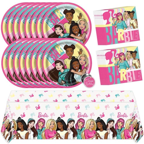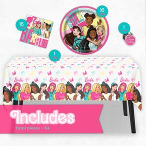 Junte-se à Barbie para dar ao seu filho uma festa de aniversário fabulosa! Este kit de decoração de festa Barbie contém tudo o que você precisa para uma configuração e remoção fáceis e rápidas. Este conjunto de decorações de aniversário da Barbie inclui: 1 capa de mesa, 16 pratos grandes de papel de 23 cm, 116 guardanapos de papel e 1 botão "It's My Birthday". A toalha de mesa à prova de vazamentos mede 137 x 213 cm e deve caber na maioria das mesas de jantar confortavelmente. A configuração não levará mais de 15 minutos e a limpeza só precisa de um saco de lixo. Este pacote de festa inclui mais do que apenas louças descartáveis - também tem uma toalha de mesa festiva perfeita para amarrar o quarto e um botão It's My Birthday para o convidado de honra. Todos os pratos e guardanapos deste conjunto de artigos de festa de aniversário da Barbie são feitos de papel resistente de alta qualidade e podem conter facilmente qualquer tipo de comida. Este conjunto de artigos de festa da Barbie faz parte da coleção Barbie oficialmente licenciada da Unique. Itens adicionais, como lembrancinhas de festa da Barbie, capas de mesa extras e decorações também estão disponíveis. Inclui: Toalha de mesa/toalha de mesa, 137 x 213 cm, plástico, 1 quilate Pratos grandes, 23 cm, papel, 16 quilates Guardanapos, papel, 16 unidades Botão It's My Birthday (It's My Birthday), 1 quilate - Junte-se à Barbie para dar ao seu filho uma festa de aniversário fabulosa! Este kit de decoração de festa Barbie contém tudo o que você precisa para uma configuração e remoção fáceis e rápidas. - Inclui: Este conjunto de decorações de aniversário da Barbie inclui: 1 capa de mesa, 16 pratos grandes de papel de 23 cm, 16 guardanapos de papel e 1 botão "It's My Birthday". - Decoração: a toalha de mesa à prova de vazamentos mede 137 x 213 cm e deve caber na maioria das mesas de jantar confortavelmente. - Utensílios de mesa: todos os pratos e guardanapos neste conjunto de suprimentos de festa de aniversário da Barbie são feitos de papel resistente de alta qualidade e podem conter facilmente qualquer tipo de comida. Os pratos de jantar incluídos têm o tamanho ideal para pizza, cupcakes ou bolos. - Licenciado oficialmente: este conjunto de artigos de festa da Barbie faz parte da coleção Barbie oficialmente licenciada pela Unique. Itens adicionais, como lembrancinhas de festa da Barbie, capas de mesa extras e decorações também estão disponíveis.