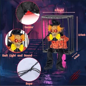 - A gaiola mede 8,9* 3,7* 11 polegadas e inclui duas cordas grossas para pendurar, que têm 30 polegadas de um lado, permitindo usos criativos, como carregar o mini palhaço fantasma assustador nas costas para surpreender os outros.
