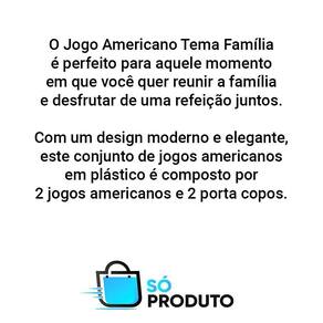 Imagem Meramente Ilustrativa: Uma imagem colorida e atraente do Jogo Americano Familiar, mostrando as 6 peças em uso em uma mesa de jantar. Marca: SÓ PRODUTO