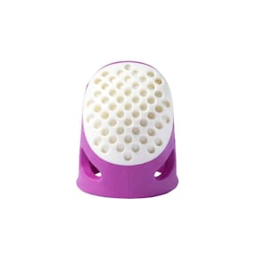 - Marca: Prym - Referência: 431 141 - Cor: Rosa e branco - Dedal ergonômico com alto conforto de uso - Eixo de plástico macio e ponta de plástico rígido - Tamanho: S - Material: Plástico