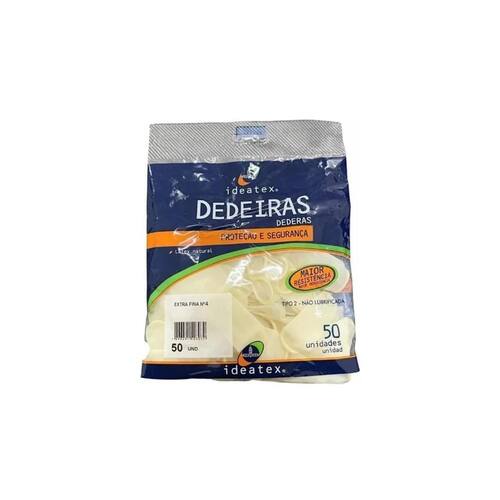 dedeira extra fina n. 04 no tamanho 28mm x 75mm. Material as luvas de procedimento. Dedeira confeccionada em látex de borracha natural, lisa, não estéril, para proteção dos dedos de usuários expostos a agentes biológicos em trabalhos diversos, que requeiram tato, como: no manuseio de matéria-prima e produto acabado. Uso único para maior higiene e segurança. Descartar após o uso. As dedeiras de látex têm o objetivo de proteger os usuários nos procedimentos que envolvam atividades manuais com riscos de contaminação, pois previne o contato direto da extremidade dos dedos com os materiais.