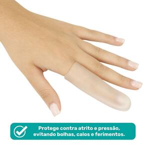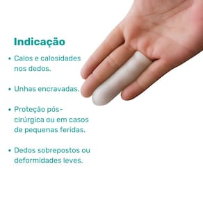 Confeccionada inteiramente em gel polímero viscoelástico (Skingel), adapta-se perfeitamente à anatomia dos dedos, reduzindo a pressão, o atrito e o impacto causados por calçados ou atividades do dia a dia.
